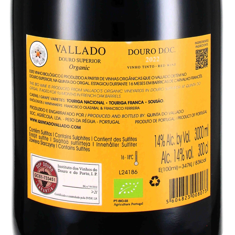 Verkostungsnotiz: 2022 Vallado Douro Tinto Superior DOC - organic vinyards, Quinta do Vallado